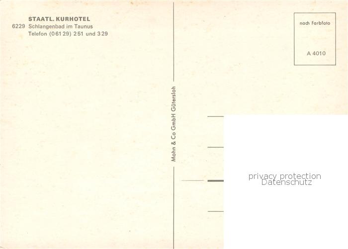 73759252 Schlangenbad Taunus Staatl. Kurhotel Aussenansicht postalisch nicht gelaufen Erhaltung siehe scans [LiesaD40] KatCode: 11110006439014