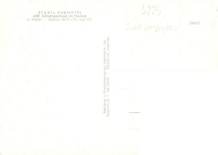 73935919 Schlangenbad Taunus Staatl Kurhotel postalisch nicht gelaufen Erhaltung siehe scans [FriedD77] KatCode: 11110006439014
