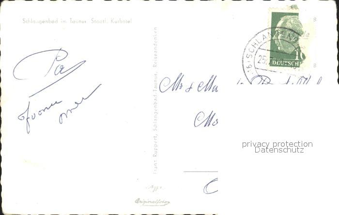 72312645 alte Postkarte Schlangenbad Taunus Staatliches Kurhotel postalisch gelaufen Erhaltung siehe scans KatCode: 11110006439014