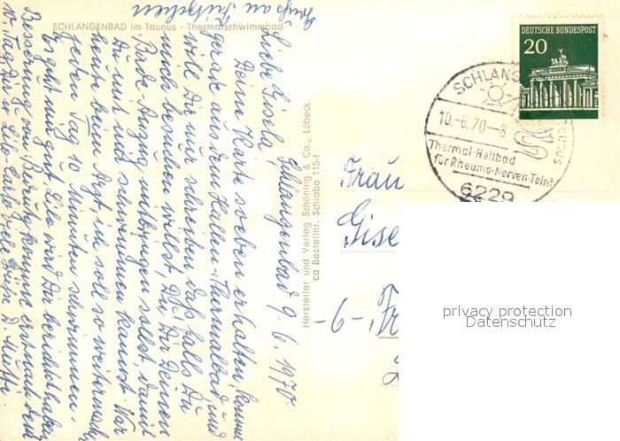 73121709 alte Postkarte Schlangenbad Taunus Thermalschwimmbad postalisch gelaufen Erhaltung siehe scans [KathaD81] KatCode: 11110006439014