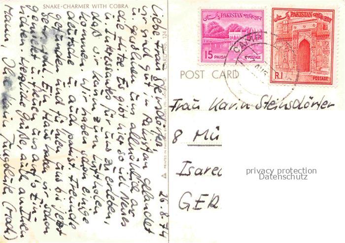 74086397 alte Postkarte Schlangenbeschwoerer Schlangen Snakes Serpents Serpientes– Snake Charmer Cobra postalisch gelaufen Erhaltung siehe scans [IrynaD87] KatCode: 22540000001800