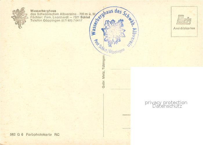73634967 Schlat Wasserberghaus des Schwaeb Alpenvereins postalisch nicht gelaufen Erhaltung siehe scans [WerneD78] KatCode: 11110008117043