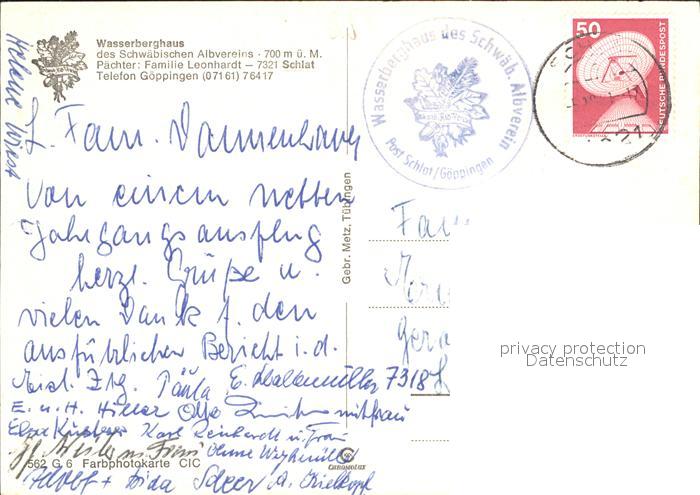 71936296 alte Postkarte Schlat Wasserberghaus postalisch gelaufen Erhaltung siehe scans KatCode: 11110008117043