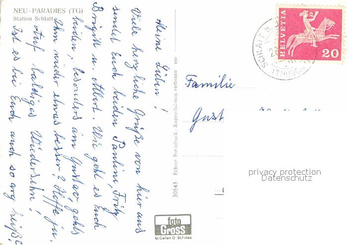 12690976 Schlatt TG Fliegeraufnahme Neu-Paradies postalisch gelaufen Erhaltung siehe scans [LiesaD40] alte Postkarte Lies Katcode 11470200610046