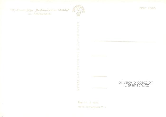 73739156 Schlaubetal HO Gaststaette Brehmsdorfer Muehle postalisch nicht gelaufen Erhaltung siehe scans [FriedD77] KatCode: 11110012067438