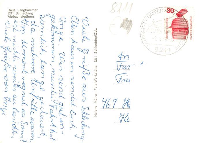 73960049 alte Postkarte Schleching Gaestehaus Haus Langhammer Alpbachsiedlung postalisch gelaufen Erhaltung siehe scans [FriedD77] KatCode: 11110009189141