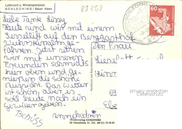 71994531 alte Postkarte Schleching Kampenwand postalisch gelaufen Erhaltung siehe scans KatCode: 11110009189141