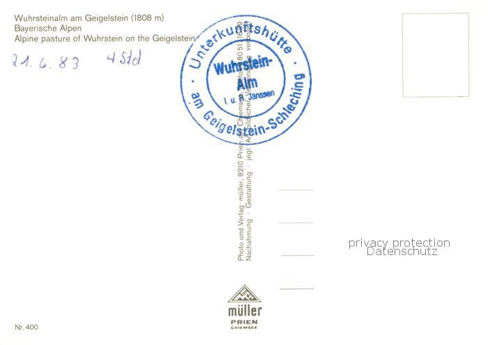 73760579 Schleching Wuhrsteinalm am Geigelstein Hochgern Watzmanngebiet Achental postalisch nicht gelaufen Erhaltung siehe scans [FriedD77] KatCode: 11110009189141