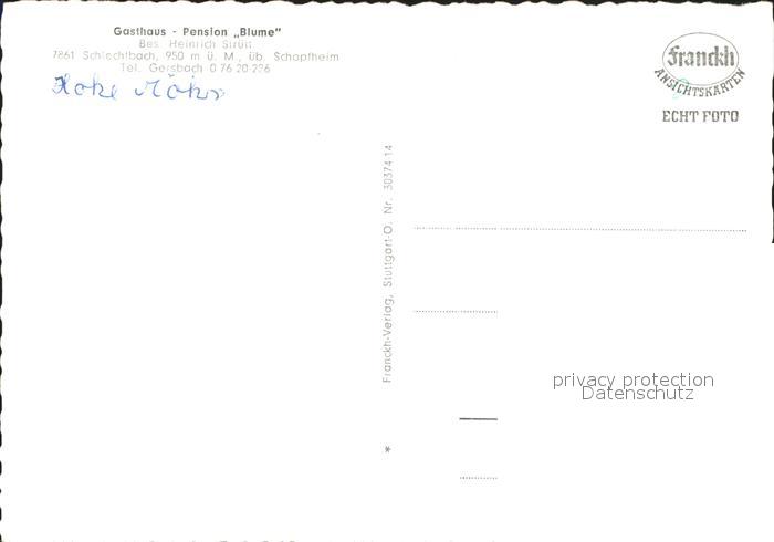 71838040 Schlechtbach Schopfheim Gasthaus Pension Blume postalisch nicht gelaufen KatCode: 11110008336081