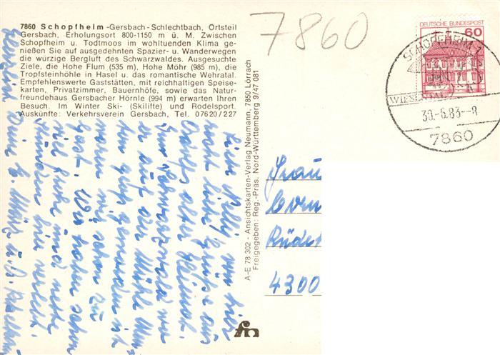 73928244 alte Postkarte Schlechtbach Schopfheim Schwarzwald Fliegeraufnahme postalisch gelaufen Erhaltung siehe scans [WerneD78] KatCode: 11110008336081