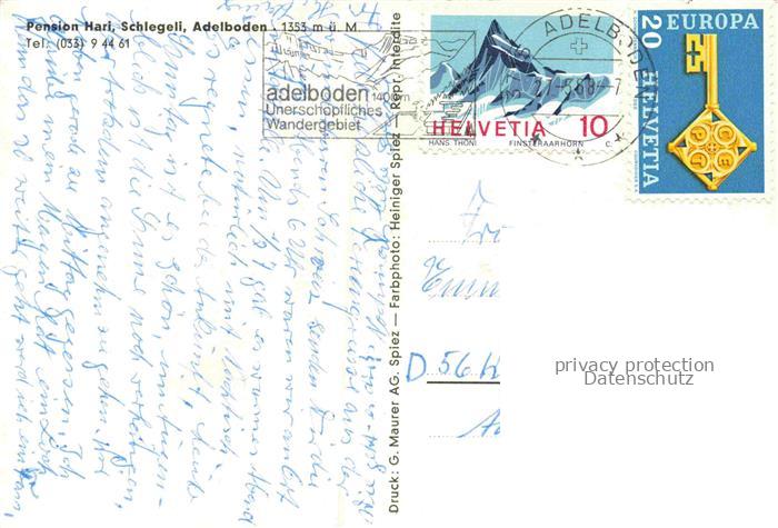 14109223 Schlegeli Adelboden BE Pension Hari postalisch gelaufen Erhaltung siehe scans [FriedD77] alte Postkarte Frie Katcode 11470060170196