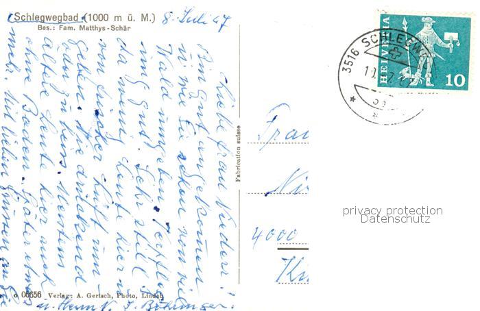 13820413 alte Postkarte Schlegwegbad BE Ansicht postalisch gelaufen Erhaltung siehe scans [WerneD78] KatCode: 11470060180336
