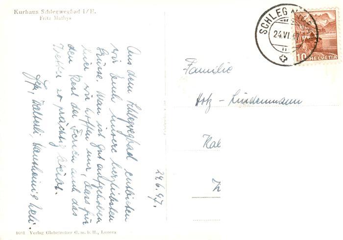 13870388 alte Postkarte Schlegwegbad Linden BE Kurhaus Schwegwegbad postalisch gelaufen Erhaltung siehe scans [FriedD77] KatCode: 11470060180336