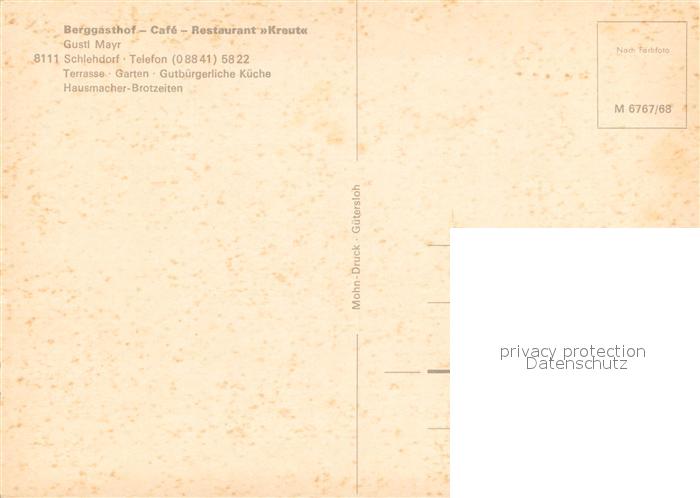 73653010 Schlehdorf Berggasthof Cafe Restaurant Kreut Terrasse Gaststube postalisch nicht gelaufen Erhaltung siehe scans [WerneD78] KatCode: 11110009173142
