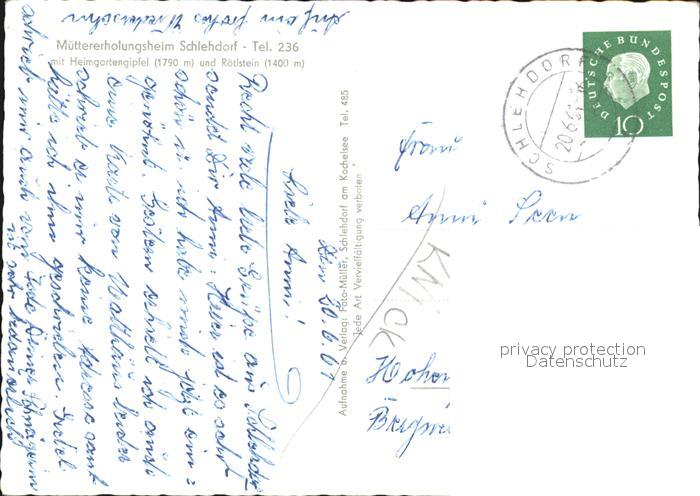 72533705 alte Postkarte Schlehdorf Muettererholunsheim Heimgartengipfel Roetlstein Bayerische Voralpen postalisch gelaufen Erhaltung siehe scans [FriedD77 kt118box] KatCode: 11110009173142