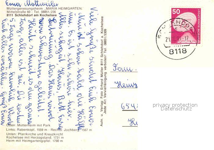 72780140 alte Postkarte Schlehdorf Muettergenesungsheim Maria Heimgarten Park Kochelsee postalisch gelaufen Erhaltung siehe scans [FriedD77] KatCode: 11110009173142