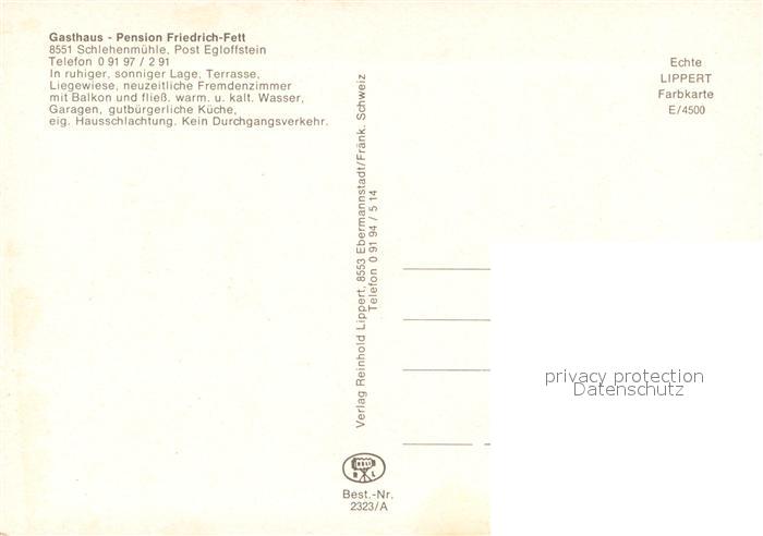 73654442 Schlehenmuehle Egloffstein Gasthof Pension Friedrich Fett Terrasse postalisch nicht gelaufen Erhaltung siehe scans [FriedD77] KatCode: 11110009474124