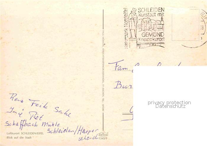 72916363 alte Postkarte Schleiden Eifel Blick ueber die Stadt postalisch gelaufen Erhaltung siehe scans [FriedD77] KatCode: 11110005366036