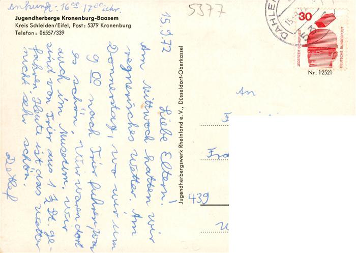 73883555 alte Postkarte Schleiden Eifel Jugendherberge Kronenburg Baasem postalisch gelaufen Erhaltung siehe scans [WerneD78] KatCode: 11110005366036