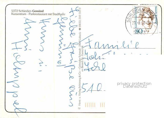 72767213 alte Postkarte Schleiden Eifel Kurzentrum Parkrestaurant mit Stadthalle postalisch gelaufen Erhaltung siehe scans [WerneD78] KatCode: 11110005366036