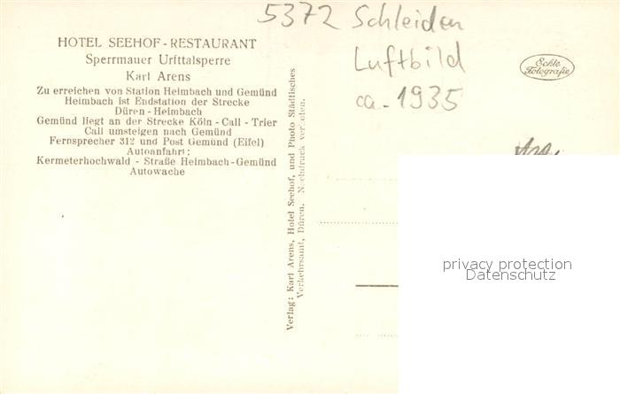 73689838 Schleiden Eifel Urfttalsperre Fliegeraufnahme postalisch nicht gelaufen Erhaltung siehe scans [FriedD77] KatCode: 11110005366036
