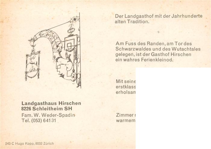 13897548 Schleitheim SH Landgasthaus Hirschen Gastraeume Fliegeraufnahme postalisch nicht gelaufen Werbekarte (keine Postkarte) Erhaltung siehe scans [WerneD78] KatCode: 11470160465376