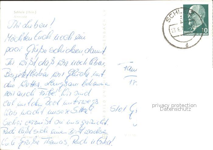 72118586 alte Postkarte Schleiz Altmarkt postalisch gelaufen Erhaltung siehe scans KatCode: 11110016075098