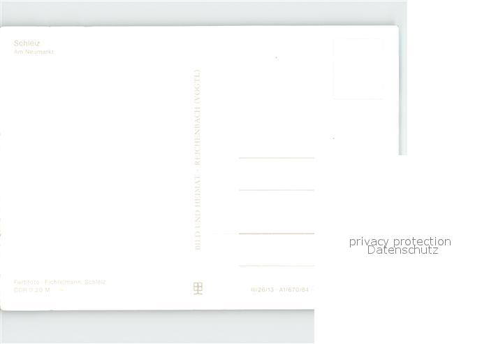 72006211 Schleiz Am Neumarkt postalisch nicht gelaufen Erhaltung siehe scans KatCode: 11110016075098