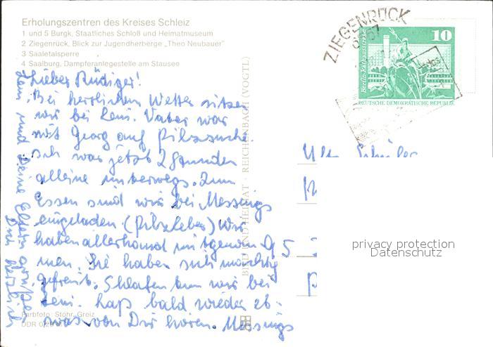 72264698 alte Postkarte Schleiz Burgk Schloss Ziegenrueck Saaletalsperre Saalburg postalisch gelaufen Erhaltung siehe scans KatCode: 11110016075098