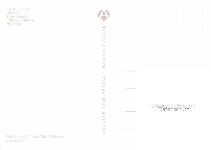 72919543 Schleiz Kreiskulturhaus Rathaus Schwimmbad Historische Muenze Neumarkt postalisch nicht gelaufen Erhaltung siehe scans [FriedD77] KatCode: 11110016075098