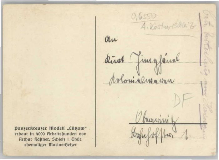 40635315 Schleiz Modell Lützow Panzerkreuzer Arthur Kästner * KatCode 11110016075098
