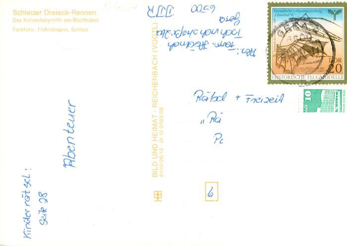 73938587 alte Postkarte Schleiz Schleizer Dreieck Rennen Kurvenlabyrinth am Buchhuebel postalisch gelaufen Erhaltung siehe scans [WerneD78] KatCode: 11110016075098