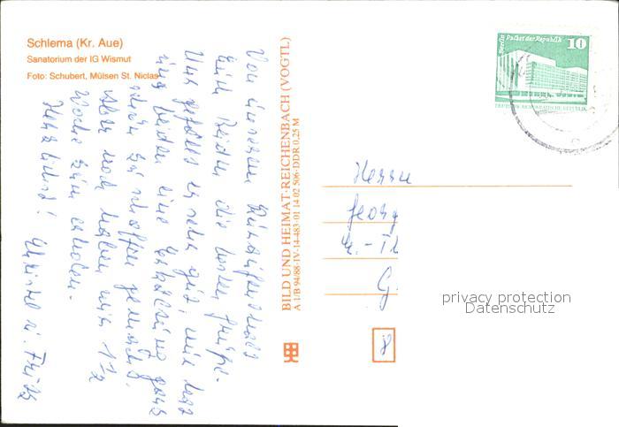 71990680 alte Postkarte Schlema Bad Sanatorium IG Wismut postalisch gelaufen Erhaltung siehe scans KatCode: 11110014191270