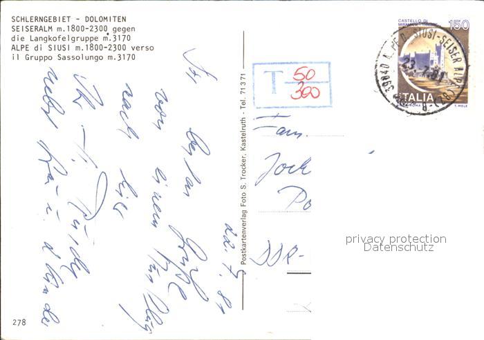 72614499 alte Postkarte Schlerngebiet Dolomiten Seiseralm Langkofelgruppe postalisch gelaufen Erhaltung siehe scans [WerneD78] KatCode: 11390332070364