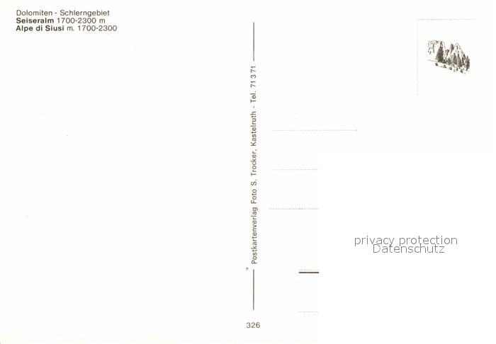 72701216 Schlerngebiet Dolomiten Seiseralm postalisch nicht gelaufen Erhaltung siehe scans [KathaD79] KatCode: 11390332070364