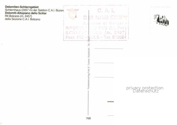 Schlernhaus Berghaus Dolomiten postalisch nicht gelaufen Erhaltung siehe scans [FriedD77]