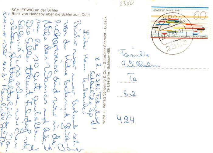 73941205 alte Postkarte Schleswig Holstein Blick von Haddeby ueber die Schlei zum Dom postalisch gelaufen Erhaltung siehe scans [FriedD77] KatCode: 11110001059075