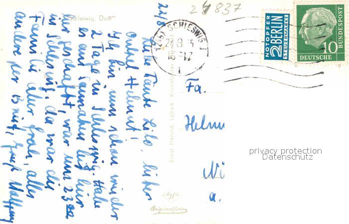 72890356 alte Postkarte Schleswig Holstein Dom postalisch gelaufen Erhaltung siehe scans [FriedD77] KatCode: 11110001059075