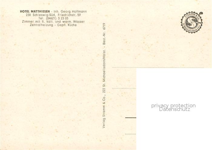 73776208 Schleswig Holstein Hotel Matthiesen Fremdenzimmer Restaurant postalisch nicht gelaufen Erhaltung siehe scans [FriedD77] KatCode: 11110001059075