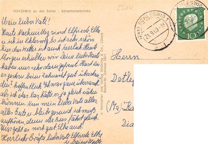 73941202 alte Postkarte Schleswig Holstein Schleihallenbruecke an der Schlei postalisch gelaufen Erhaltung siehe scans [FriedD77] KatCode: 11110001059075
