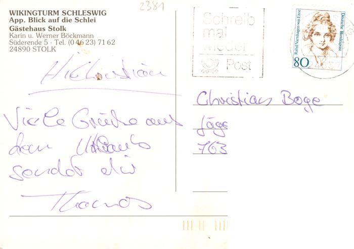 73941183 alte Postkarte Schleswig Holstein Wikingturm Gaestehaus Stolk Blick ueber die Schlei postalisch gelaufen Erhaltung siehe scans [FriedD77] KatCode: 11110001059075