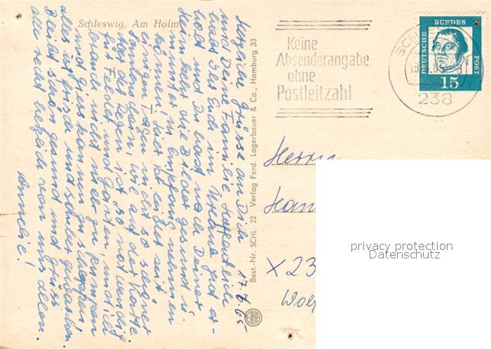 73670162 alte Postkarte Schleswig Schlei Am Holm postalisch gelaufen Erhaltung siehe scans [WerneD78] KatCode: 11110001059024