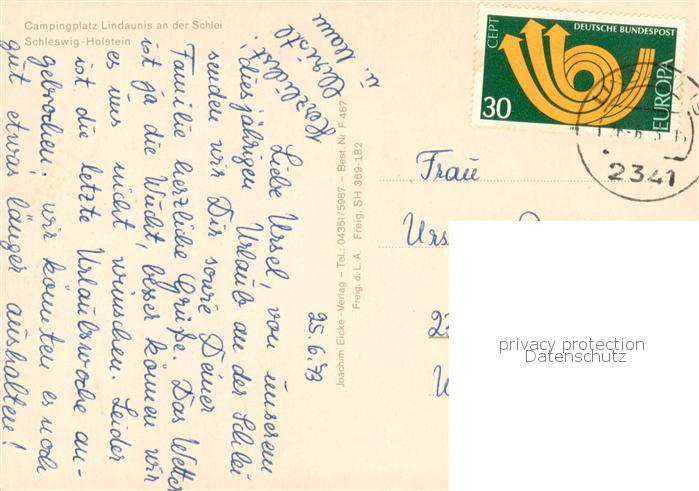73761138 alte Postkarte Schleswig Schlei Campingplatz Lindaunis Fliegeraufnahme postalisch gelaufen Erhaltung siehe scans [WerneD78] KatCode: 11110001059024