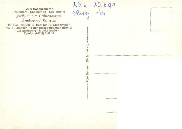 73875396 Schleswig Schlei Erfde Restaurant Pfeffermuehle Grillrestaurant Rendezvous Kellerbar postalisch nicht gelaufen Erhaltung siehe scans [FriedD77] KatCode: 11110001059024