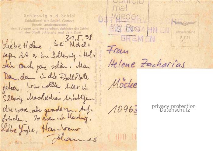74043036 alte Postkarte Schleswig Schlei Erfde Schleswig-Holstein Schlossinsel mit Schloss Gottorp Fliegeraufnahme postalisch gelaufen Erhaltung siehe scans [WerneD78] KatCode: 11110001059024
