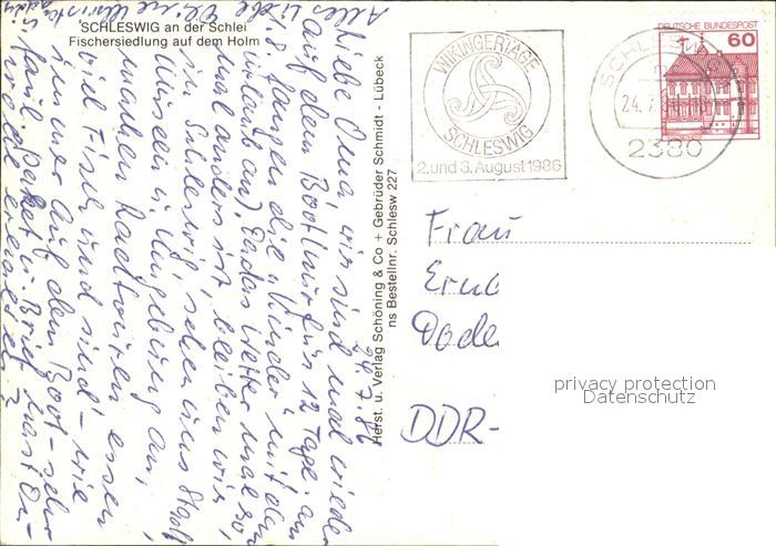 72051103 alte Postkarte Schleswig Schlei Fischersiedlung auf dem Holm postalisch gelaufen Erhaltung siehe scans KatCode: 11110001059024