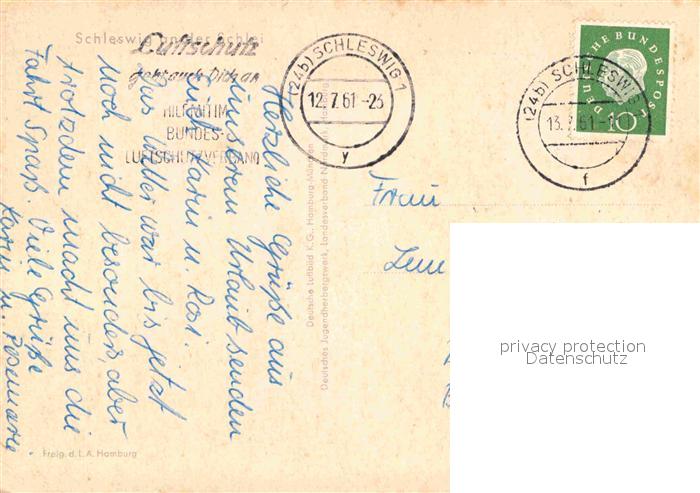 72837239 alte Postkarte Schleswig Schlei Fliegeraufnahme postalisch gelaufen Erhaltung siehe scans [FriedD77] KatCode: 11110001059024