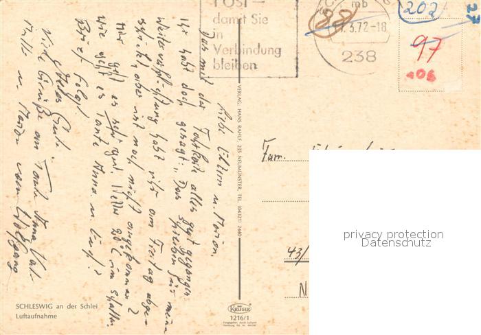 73740408 alte Postkarte Schleswig Schlei Fliegeraufnahme postalisch gelaufen Erhaltung siehe scans [FriedD77] KatCode: 11110001059024