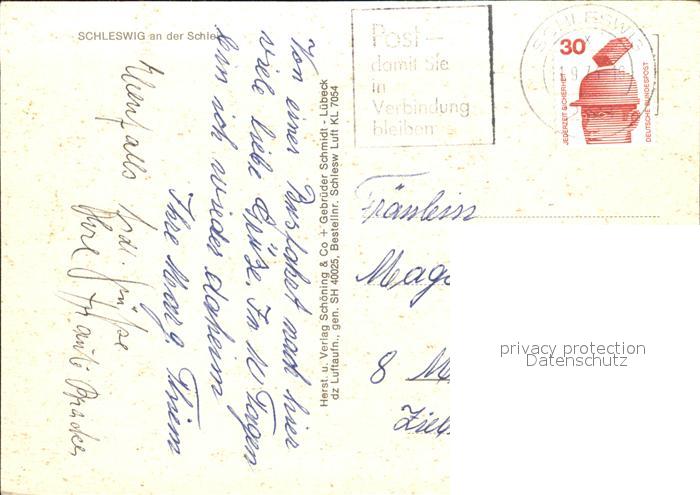 72610610 alte Postkarte Schleswig Schlei Fliegeraufnahme postalisch gelaufen Erhaltung siehe scans [AndreD76] KatCode: 11110001059024