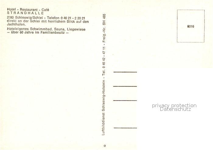 72947212 Schleswig Schlei Fliegeraufnahme Hotel Restaurant Caf? Strandhalle postalisch nicht gelaufen Erhaltung siehe scans [LiesaD40] KatCode: 11110001059024
